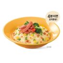 Рис вареный, обжаренный в казане на открытом огне с копченой ветчиной, морковью, луком и болгарским перцем.