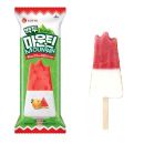 Фруктовый сорбет со вкусом арбуза сверху и со вкусом груши снизу.